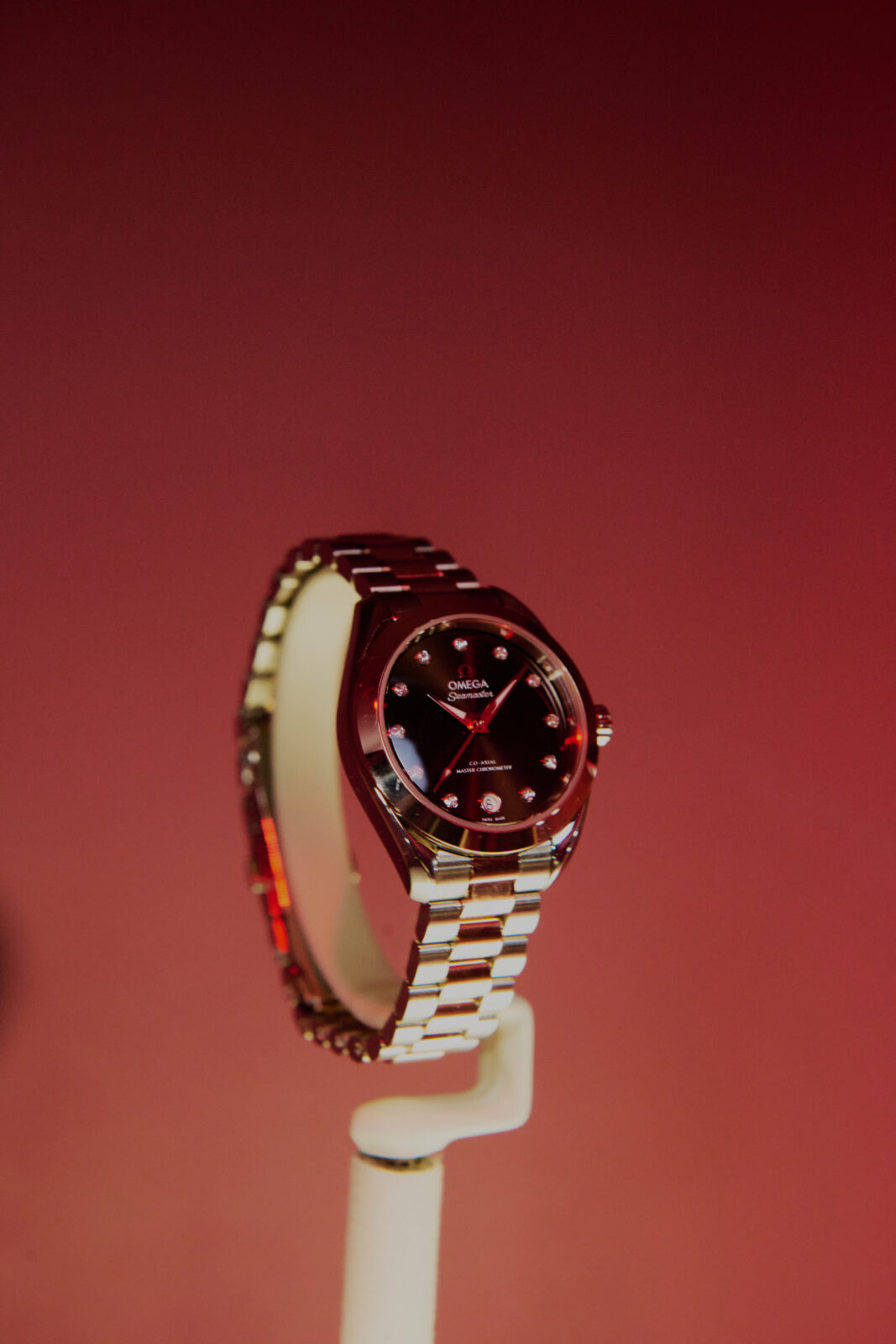 El espacio fue transformado con tonos burgundy y detalles minimalistas que transmitieron la esencia de la marca: precisión, sofisticación y atemporalidad. El recorrido sensorial, inspirado en la campaña global «my little secret», convirtió cada vitrina iluminada y cada rincón en una experiencia envolvente, un recurso clave para quienes buscan diseñar atmósferas sorprendentes.