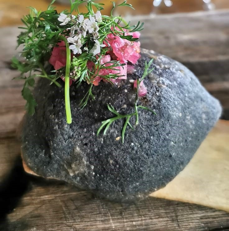- Yema en soya | Caviar siberiano| Pan campesino al grill